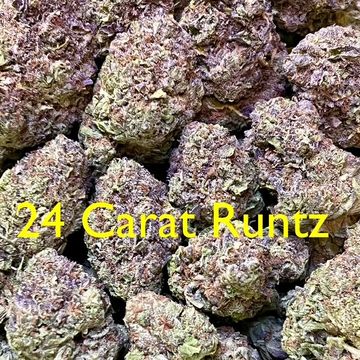 24 Carat Runtz is a 50/50 hybrid cross of Kosher Kush & Lemon Runtz. This strain provides euphoric & relaxing effects that leave you in a happy state of mind. A lifted euphoria is first, boosting your mood & leaving you feeling insanely happy, although slightly spacey. As this effect builds, a deep relaxation will sweep over your body, leaving you a little bit couch-locked & sleepy. Treats chronic pain, arthritis, Bipolar Disorder, fatigue, & inflammation. 1/8=$45; 1/4=$90; 1/2=$160; oz=$270