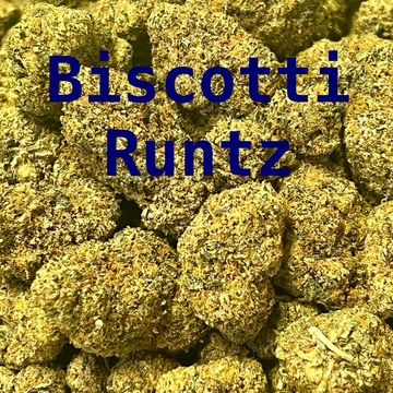 Biscotti Runtz is a highly regarded indica-dominant hybrid cross of Biscotti & Runtz. The indica dominance contributes to a calming, relaxing body high, while the sativa influence provides cerebral stimulation, uplifting mood and sparking creativity. This blend of effects makes Biscotti Runtz perfect for unwinding at the end of a busy day, while still maintaining mental clarity and focus. 1/8=$40; 1/4=$80; 1/2=$140; oz=$240