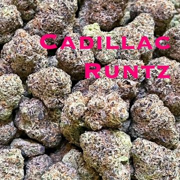 Cadillac Runtz is an indica dominant phenotype of the extremely popular Runtz strain. The strain is popular amongst individuals looking for unparalleled body relaxation. Its effects also offer great relief for those in pain and it is quite effective against several medical conditions including stress, tiredness, depression, and anxiety. It should be kept in mind that the strain is a creeper: Cadillac Runtz will hit you when you least expect it. 1/8=$45; 1/4=$90; 1/2=$160; OZ=$270