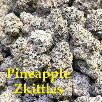 Pineapple Zkittlez , or Pineapple Z, is a sativa dominant cross of Zkittlez & Golden Pineapple. Pineapple Z is known for inducing creativity and chit-chat aplenty: ideal if you’re seeking inspiration for a project or simply wish to ponder existence itself among friends. Pineapple Z is useful for addressing depression, physical discomfort, or anxiety disorders, such was its capacity to help calm racing thoughts as well as provide an overall mood boost. 1/8=$60